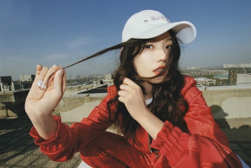 林允上身穿短款的赤色夹克,金属拉链闭合,发出熠熠光泽,时尚又前卫,干练又妥当,抽褶的袖口处理,凸显出层次感,增加视觉亮点,香甜又洋气,芳华减龄,下身穿赤色长裤,全体赤色彩系烘托,色泽美丽丰满,休闲少女感十足,脚穿赤色老鼠平底鞋,调配赤色的老鼠小包,幽默又心爱,梳着长长的披肩卷发,戴着白色的棒球帽,妩媚婀娜又潮味十足。