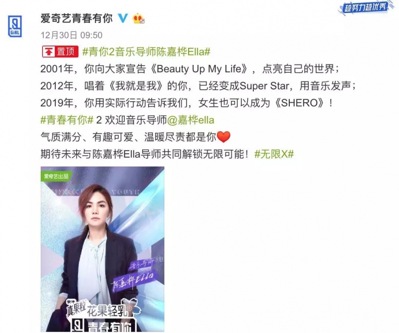 继LISA、JONY J、蔡徐坤,昨天官宣了音乐导师ELLA