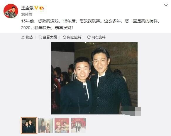 1月3日王宝强与刘德华重聚后发文感叹:“15年前,您教我演戏,15年后,您教我跳舞。这么多年,您一直是我的典范。2020,新年快乐,恭喜发财!”