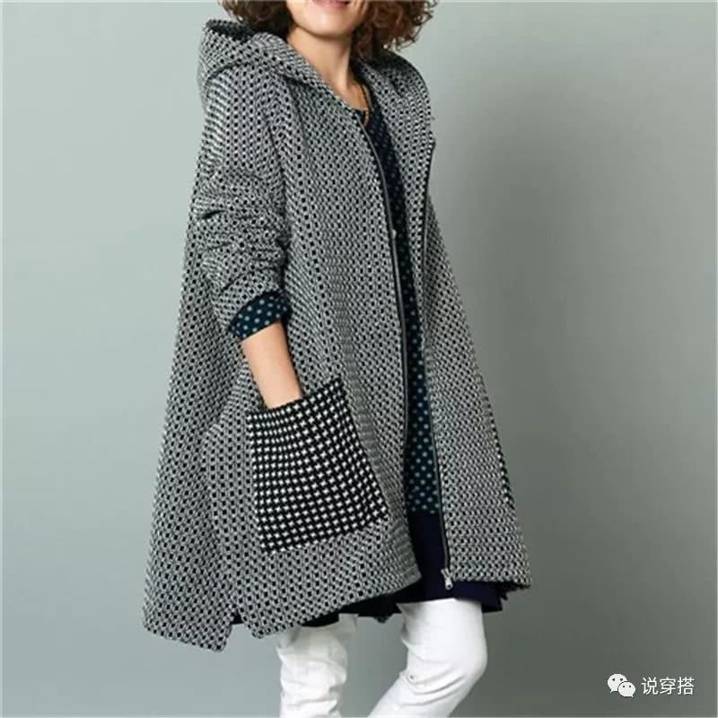 夹棉的大码宽松棉服,连帽的规划休闲百搭,格纹的口袋有着复古的文艺范,显瘦时髦