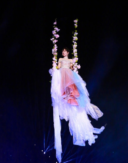 杨紫在高空中唱了一首《有或许的夜晚》,一路“飘”在空中的杨紫好像丝毫不惧怕,脸上一向带着笑脸,歌声也非常香甜。