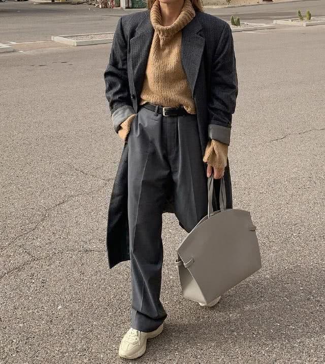 想要穿出大长腿的女生,还能够学习这一组look,挑选尖头鞋与阔腿长裤同色的穿法,进一步延伸腿部线条,妥妥的显高。仅仅关于爱洁净的女生来说,这种盖住鞋子的拖地裤调配,并不合适你,不只不耐脏还显得过分磨蹭。