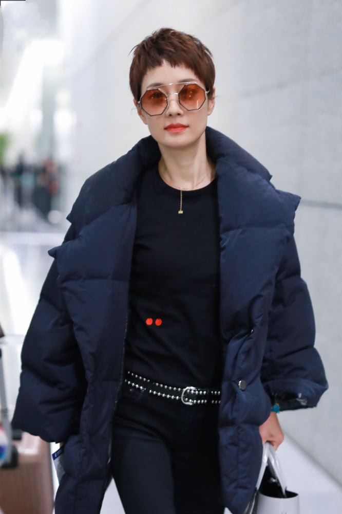 平常现身机场,,她要不便是墨镜口罩,要不便是简略的口红提一下气色。很少见到她会连眉毛睫毛都安排上,这全妆的容貌看着真是太冷艳了。隔着墨镜也能看到她稠密卷翘的睫毛,眼睛看着更大更有神。元气感十足的腮红和唇色,十分衬她的肤色。再调配上那飒爽的短发,就更是干练潇洒了。小小的身板却发出出了强壮的气场,与酷黑穿调配出十足的御姐范儿。