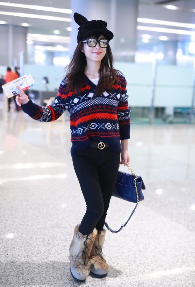 张静初每次现身机场给人的感觉便是简略低沉,要不是自带的明星气场撑起了全部,否则真不知道会变成什么样,可是这次就不同了,温度尽管升高了,可是在保暖办法上张静初做得太到位,经典的粗线毛衣,V领的规划显露细长的天鹅颈,白色的打底衫看上去很有层次感,年青又时尚。