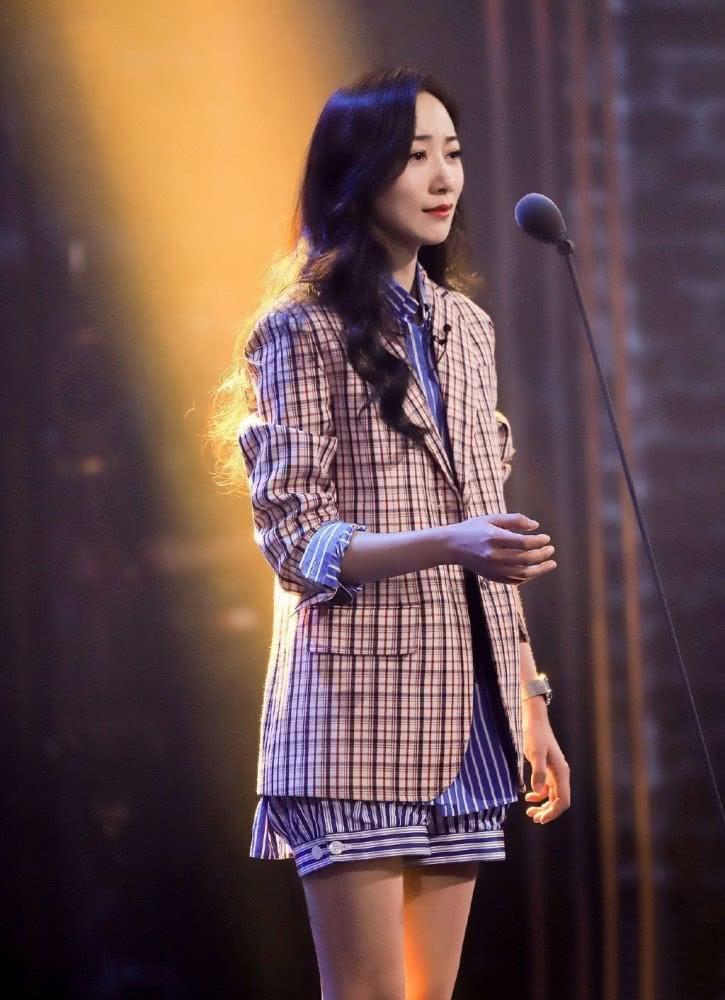 西装膀子宽松的规划很好的展现出她的身段,显得她身形修长,并且这种格子显得皮肤愈加白净!整个人英俊干练,并且完美的秀出一双长腿!让人仰慕极了!真是太美观了!