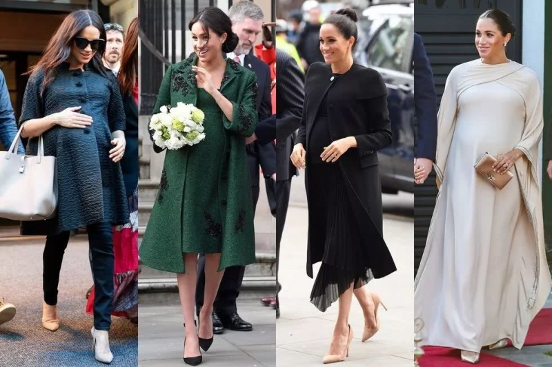 还没生小王子时,梅根就穿过一件 H&M 的奶油色孕妇装,调配 Armani 羊绒大衣和高跟鞋。