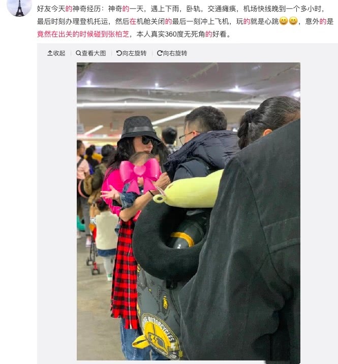 1月8日,有网友晒出了偶遇了女神张柏芝单独带着三胎儿子走机场的相片,三胎妈妈张柏芝一个人带娃也是实力开挂,自己背着婴儿背带拿着包,腾出双手还拿着乘机材料,一向用手机查着什么,只能说一个人带娃诚心不容易。而肉嘟嘟的小王子在妈妈怀中超灵巧,从小便是交心萌娃一枚。