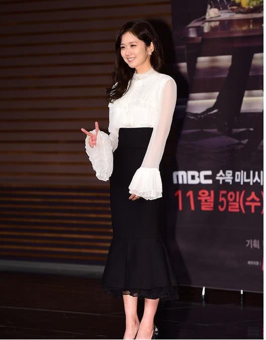 如果你不是很喜欢这种比较职业化的搭配,那么也可优先考虑像张娜拉这样选择一条白色的收腰连衣裙来进行搭配,这条连衣裙上半部分模仿了西装的款式设计,所以看上去会更加的具有端庄优雅的感觉,让张娜拉显得很温柔。