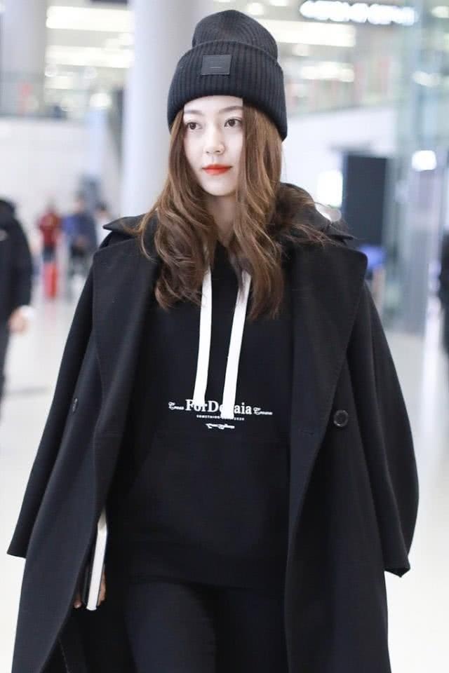 黄梦莹全黑Look走机场,大衣作为披肩穿,洒脱霸气气场十足。黄梦莹的造型十分洒脱,展示出了干练的气场,有成功女人的高雅与霸气