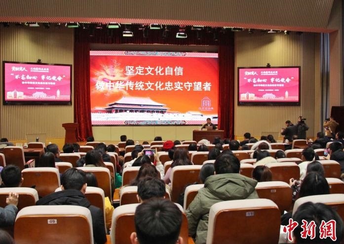 单霁翔为师生们带来题为“不忘初心 牢记使命——做中华优秀民间传统文化的忠实守望者”的报告。 赵晓 摄