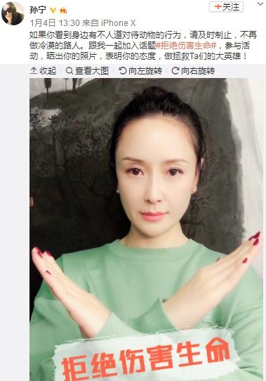 1月4日,孙宁晒出美照,呼吁我们不要做冷酷之人,看到损伤动作的行为要及时阻止。照片中,她穿戴苹果绿的上衣,扎着丸子头,减龄又时髦。