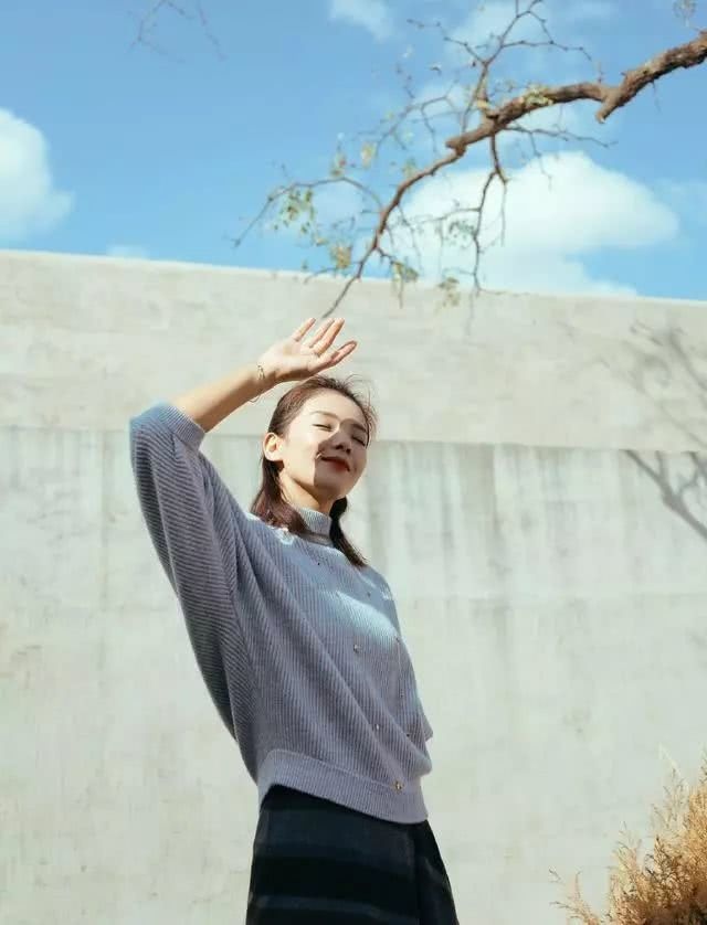 上身浅灰色蝙蝠款式的毛衫,宽松随意,短款的规划减少了服饰的厚重感,并且显得手臂愈加纤细白净。螺丝竖纹翻领完美展示了刘涛诱人的颈部曲线,简略的一件上衣却是“暗藏玄机”,轻轻抬起的手臂好像在遮挡扎眼的阳光,脸上温暖的浅笑,是这冬日里最美的景色。