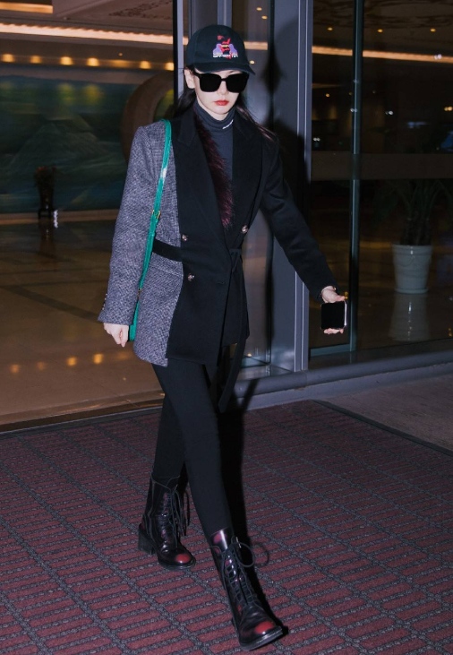 其实西装单品以及拼接的元素都是上一年特别火爆的时髦,将这样两个时髦的元素都结合在这件大衣上,真的是非常有品尝了,可是小编觉得这样的混搭大衣其实一般人是很难驾御的,咱们里边的内搭能够学习戚薇挑选黑色系的,调配马丁靴,低沉中又有亮眼的当地。