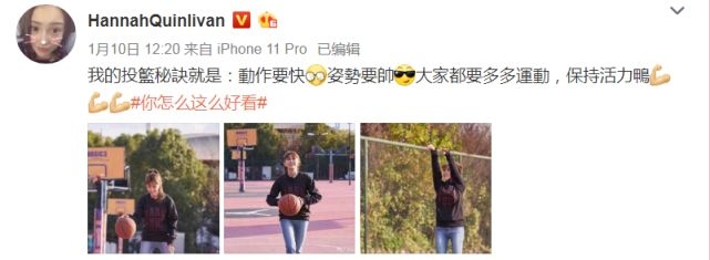 1月10日,昆凌在个人交际渠道上面共享了三张新鲜出炉的运动照,并附言“我的投篮诀窍便是:动作要快、姿态要帅、我们都要多多运动,坚持生机”。