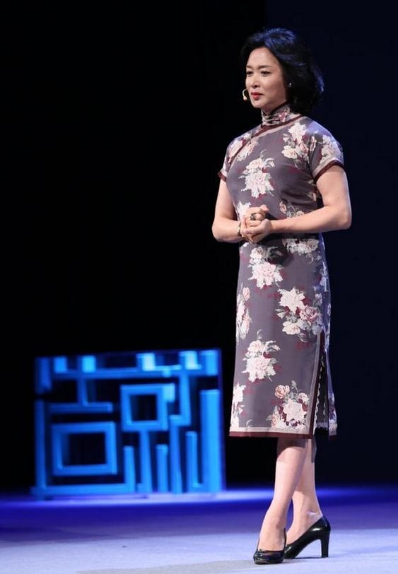 旗袍能够算是金星最喜欢的服装类型之一, 在各种场合和节目中她都有穿过,而这一次金星挑选的是一件以暗赤色为底色的传统旗袍。旗袍上印的是中国传统的花朵款式,脚下调配一双简略的黑色高跟皮鞋,不只凸显出金星凹凸有致的身段,全体上更有一种东方美的神韵。