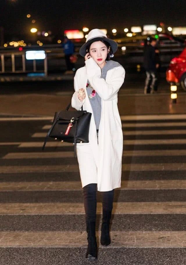她秋裤外穿走机场,因腿太细滑成堆堆袜,凹出大长腿。
