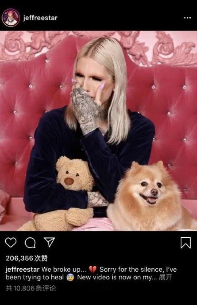 1月12日清晨,闻名网红Jeffree Star在交际渠道晒出了一张自己落泪的相片,并配文"we broke up"(咱们分手了)。据悉J姐与男友Nate现已往来五年,此番分手对J姐的冲击十分大。