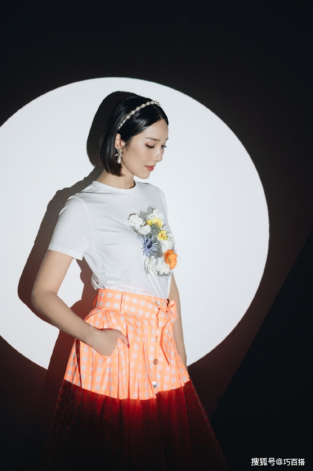 李亚男在生完孩子后,身段仍旧坚持得很好,即使是穿上简略的白色印花T恤和较老气的橙色格子裙仍然可以显示出她身段的凹凸感。珍珠样式的发箍戴在她漆黑的短发上,较为显眼,同款的耳钉也向咱们展示出她自豪的一面。看到李亚男低着头的姿态,真让人喜爱,那么高的个子也有一种小家碧玉的感觉,怪不得王祖蓝那么喜爱她。