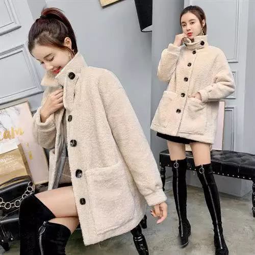 大衣女新款时尚西装领颗粒羊剪绒小羊毛外套女冬,时尚大气,精约不失时尚,做工精美,修身的裁剪贴合身体,刚刚好的长度,精美的做工,并且高雅,时尚百搭,愈加的洋气,穿的超时尚高雅。