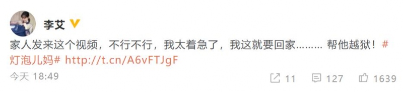 1月22日晚上,掌管人李艾更新了自己的交际动态,在动态中配了一个自己儿子灯泡儿的视频。