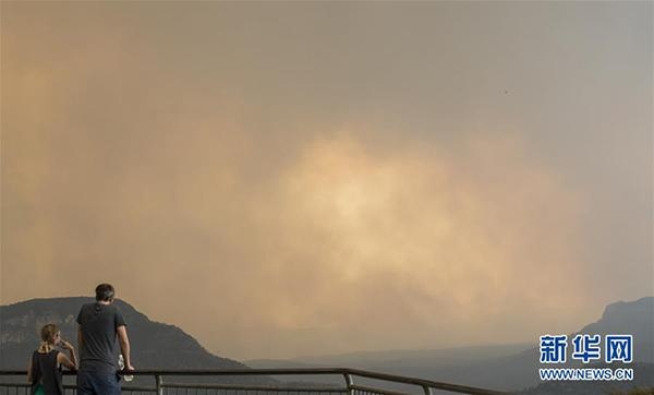 2019年12月21日,在澳大利亚新南威尔士州蓝山地区,市民远远观察山火。 新华社记者 白雪飞 摄