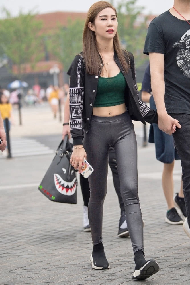 皮裤一向都是备受女孩子们喜欢穿搭衣品,不只休闲修身,并且非常具有时髦感,这位小姐一条皮裤穿搭的分外精力,运动感十足的运动鞋调配一条皮裤,上身再调配一件绿色的内搭,高挑的身段中带着潮流气味,走在街上就能成为了街头的焦点,让人赞赏不已。