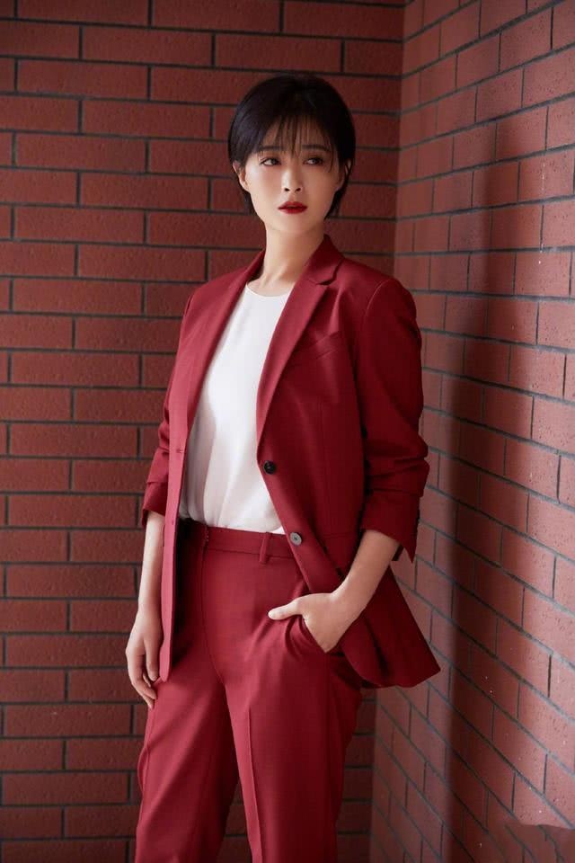 西装分为休闲宽松版的廓形西装和修身时髦版的收腰型。宽松版的廓形西装线条明亮妥当,款型比较宽松,一方面能起到很好的遮挡赘肉效果,比方臂膀上、腰上和腿部的赘肉,小粗臂、小粗腿都能无压力穿搭,一方面上身效果妥当笔挺,起到烘托干练气场的效果。蒋欣这套砖红西装便是宽松版型的廓形西装,视觉效果上看宽松有型。