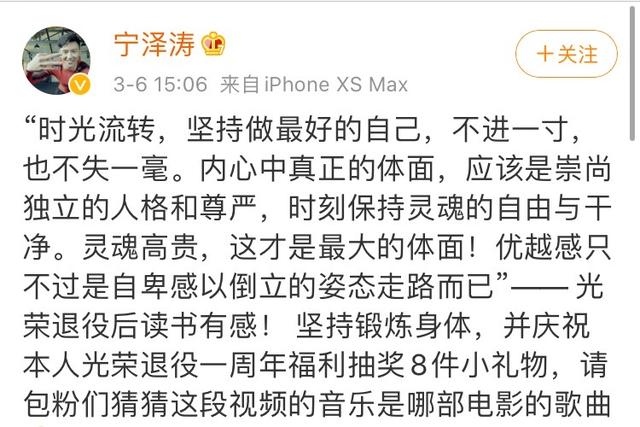 宁泽涛社会化媒体渠道上宣告的谈论,现在谈论数量现已超越一万条。宁泽涛昨日在他的社会化媒体上,庆祝自己脱离赛场一周年,他说他会一向尽力做到最好,不会向前或向后退一步。他以为真实的庄严不是人的杰出,而是对独立品格和庄严的尊重。咱们该永久记住咱们魂灵的自在和纯真,由于不管怎么说,只要崇高的魂灵才是生命中最大的庄严。至于优越感,那只是自卑的副作用。孙杨又遭冲击!宁泽涛发文或暗指孙杨,现在真是“十面埋伏”?