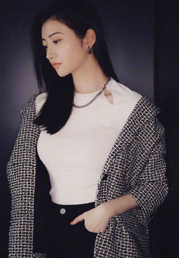 咱们来剖析一下景甜这一组调配的一些思路,景甜这几年的衣品仍是蛮多人重视的,也特别的会穿衣,这一组调配用到了经典的是非两个色彩,激烈比照一点都不显得单调了,上身是一件白色锁骨处挖空的紧身上衣,外面是是非斜纹呢原料规划的西装外套,下身是黑色紧身牛仔裤以及一双马丁靴,整组调配色彩单调却不显得庸俗。