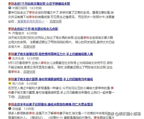现在李咏的妻子哈文带着女儿在国外肄业,自己也逐渐从丧夫的沉痛中挣脱出来,但许多媒体人却每天坚持旧事重提,貌似是在关怀这对母女,实则一遍遍地揭开他人的伤痕展现。小编觉得,逝者已矣,咱们假如真的心存敬畏和尊重,就请不要总挂在嘴上。