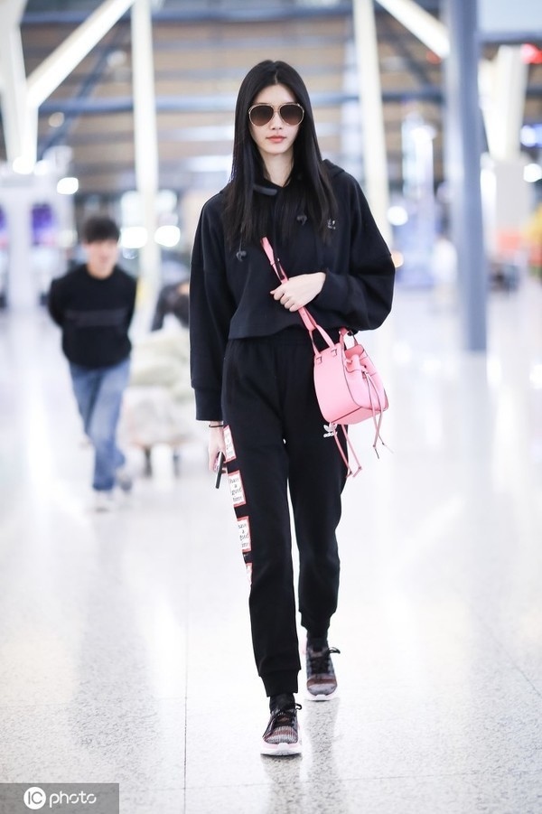哪怕是休闲运动服,也能被她穿出潮范儿十足的时尚感。