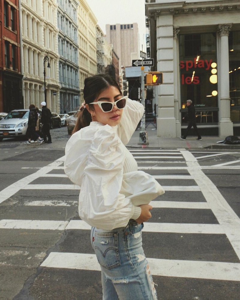 经典的白衬衣换上两条“宫殿袖”,很好地弱化了衬衣的正式感,愈加高雅知性,多了几分仙气和少女感。