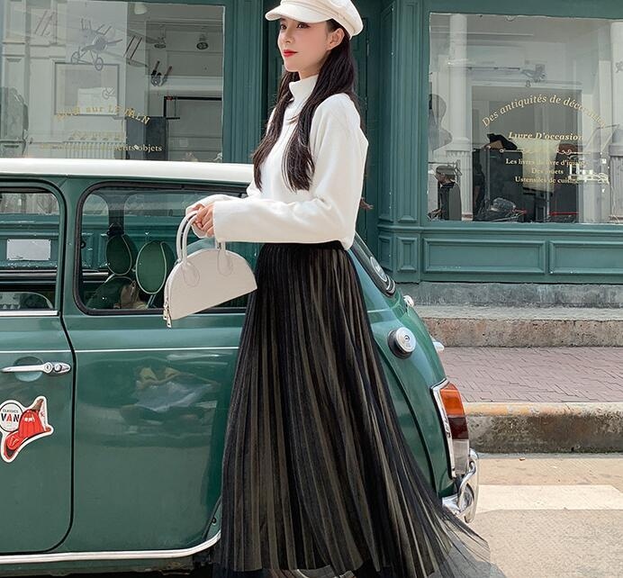 半身裙选用金丝绒面料制造而成,和婉舒适亲肤透气,贴合肌肤愈加的自在自在,带给人们更好的舒适体会。时髦大方的高腰版型,奇妙拉伸腿部的线条份额,刻画高挑动听的视觉,打造特殊的柔情与女人味。百褶垂感金丝绒面料,调配潇洒的网纱,大摆的造型十分有气场,高雅与时髦兼备。