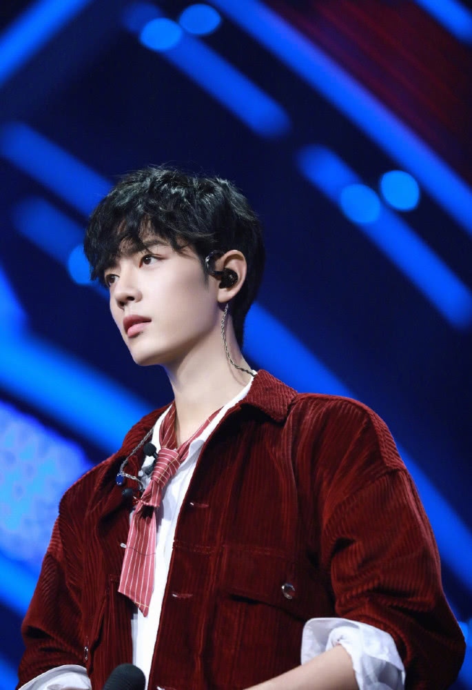 首要便是这款酒赤色的灯芯绒工装套装啦,工装衬衫与工装裤的调配少年感满满,酒赤色又独具质感,一起内搭上白色衬衫,绑上一条赤色丝巾作为领带装点,肖战这一副贵族少年的既视感也是真的没谁了。