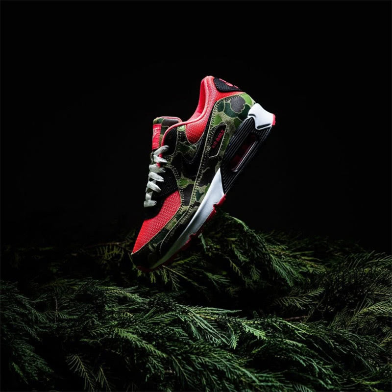 而这双把红绿搭的很有感觉又很帅的鞋,就来自Nike家十分经典的Air Max 90系列。一起它也是一年一度Nike Air Max Day的专属鞋款,所以不管从主意到标准都是十分有诚心的。这个系列的专属鞋款大多数都能很好地统筹了立异性与特殊性,常常都会给人不小的惊喜,就像这次的Nike Air Max 90 “Reverse Duck Camo”相同。