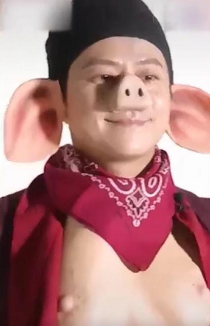 12月6日,有网友晒出了一段何炅扮演猪八戒的视频。画面中,何炅穿戴一身赤色的布衫,戴着同色系围巾,再戴上一顶黑色帽子,这穿着打扮与猪八戒非常相像。最令人吸睛的莫过于猪八戒自身的长相了。戴着大耳朵、大肚子再加上猪鼻子道具的何炅,非常呆萌心爱。