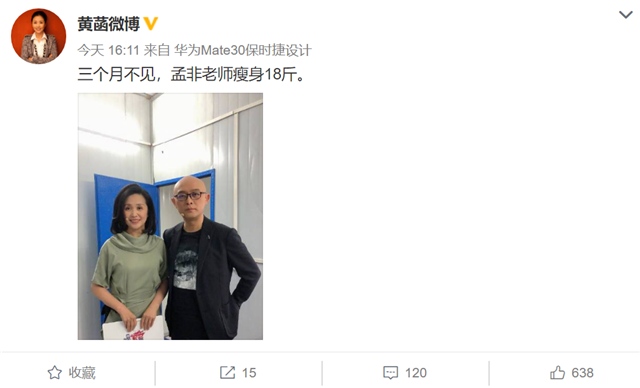 原标题:《非诚勿扰》主持人黄菡晒与孟非合照,孟非暴瘦18斤大变样