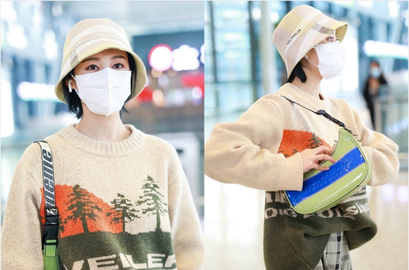 李纯戴着一顶米色的渔夫帽,调配干净利落短发,显出知性女人的共同魅力,尽管不忘做好防护办法,戴着防护口罩,可是无法掩盖她新鲜灵动的气质,非常抢眼。