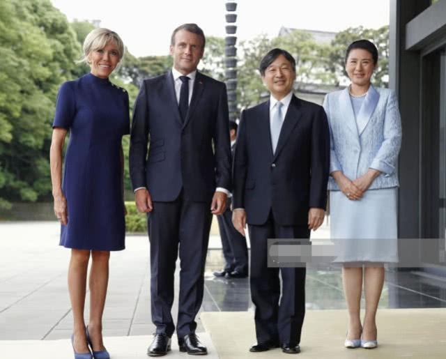 原标题:法国第一夫人与日本雅子皇后同穿蓝裙,66岁布丽吉特不输56岁雅子