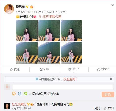 杜江和霍思燕这对夫妻是娱乐圈比较有名的恩爱夫妻了,连撒狗粮都这么独具一格。最近霍思燕在微博上传了男友视角的相片,杜江在谈论区冤枉“摄影师不配具有名字吗”,只想说狗粮真的吃撑了。不过,杜江真的很会拍,他相机中的霍思燕很美,穿牛仔裤凹出大长腿,配针织衫香甜少女。