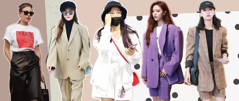 走在时尚前沿的小花们都纷繁这么穿,钟楚曦街拍中也用廓形西装调配百慕大短裤,配一顶渔夫帽玩混搭,更添潮流元素。