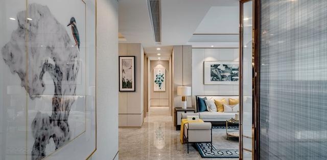 在硬装上,不是搞太杂乱的东西,一是看着简略视觉疲惫,二是预算也会添加不少。所以做了一个简略的吊顶,用一些细框线勾勒,不只很精美,还比单纯的平顶要更显层次感。