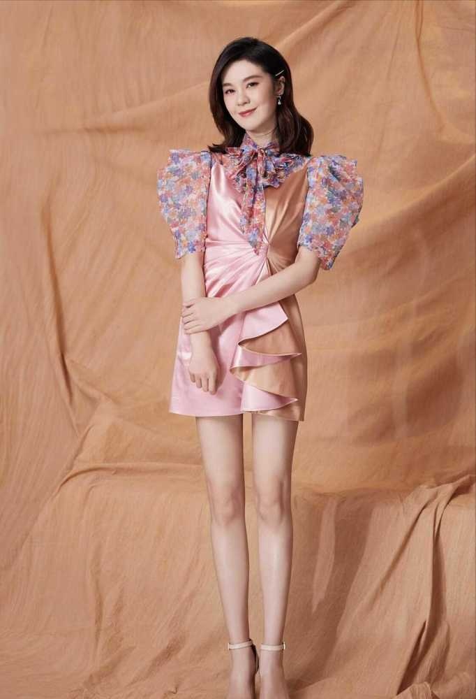裙摆部分的层次感比较显着,运用几个褶皱进一步加深了这种层次感。拼色的部分很完美地交错在一起,色彩交融得很好。穿上这条短款的吊带连衣裙,正好秀出了郁可唯的一双大长腿,展示出了自己身段方面的优势。这条连衣裙的长度比较短,略微躲避一下走光的问题。