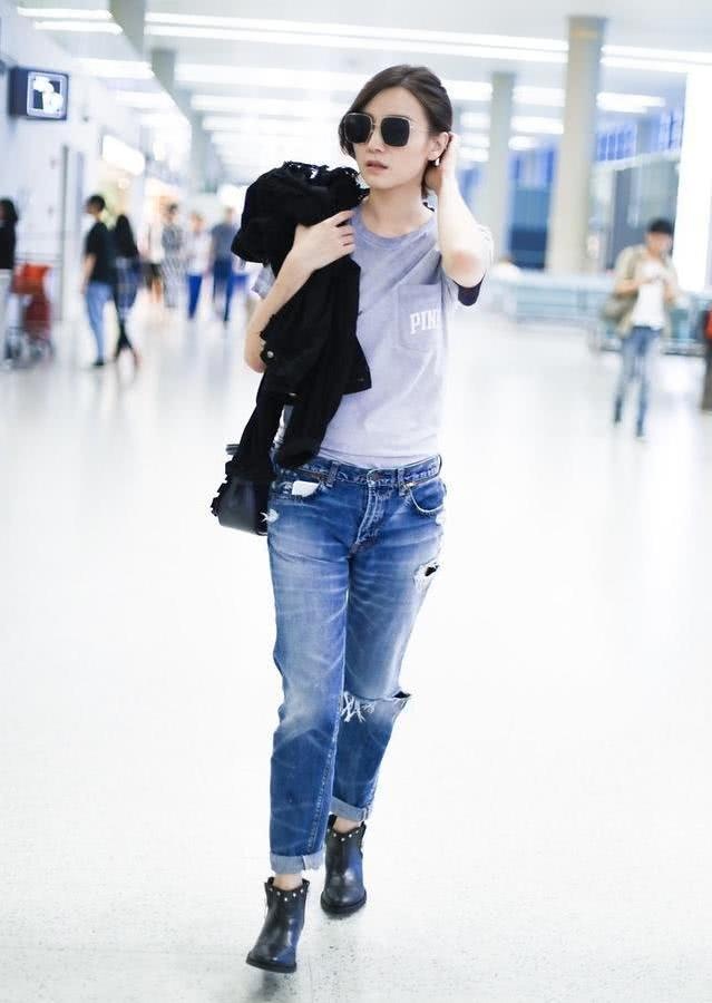 宋佳还穿过长袖T恤调配破洞裤,这个造型凸显出"颓丧文青"的气质,穿搭出了时代感,可是仍旧有吸引力,喜爱复古风、国潮风的女人都能够测验这种调配