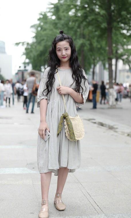 小姐姐精约的连衣裙穿搭很时尚,调配上草编的包包,很有夏天气味,全体造型显示时尚风格,配上小姐姐的小丸子头,又表现青春活力,给人一种少女感。