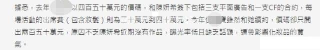 原标题:陈妍希被曝遭品牌方狠砍薪酬,一会儿降到50%,网友总结三点原因