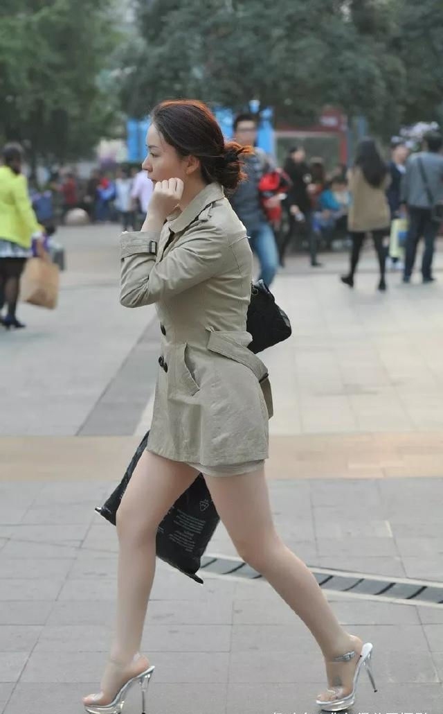 原标题:街拍,姑娘气质靓丽,穿浅灰色的风衣裙,修身又诱人