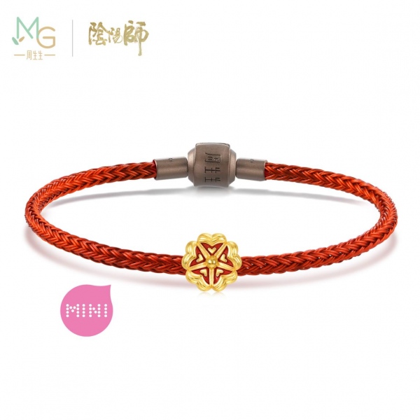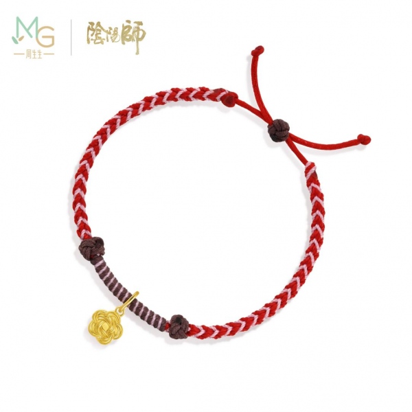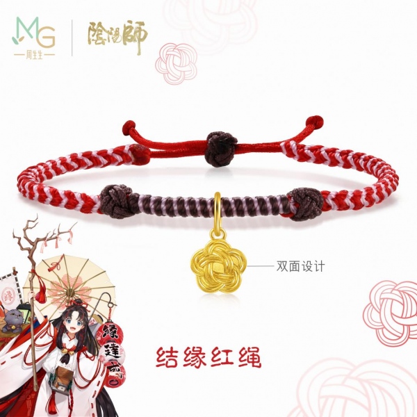 缘结神是《阴阳师》手游中掌管姻缘的神明,本次推出的两款新品分别是系住姻缘的“结缘红绳”手链以及守护姻缘的“结缘之樱”串珠。“结缘红绳”由缘结花和红绳组成,缘结花以足金打造,表面喷砂及抛光工艺增加了花朵的精致细节和立体质感,精细做工呈现灵动之美。再以一线红绳联结,寓意编织满满祝福,牢牢系住珍贵的缘分。手绳为贴心调节扣设计,方便穿戴。