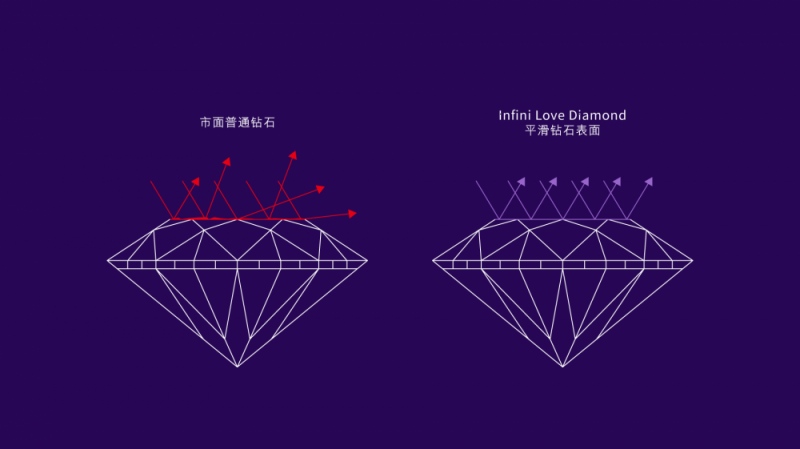 Infini Love Diamond「全爱钻™」每个切割面均打磨得光滑平顺,能反射出平均而耀目的光芒。